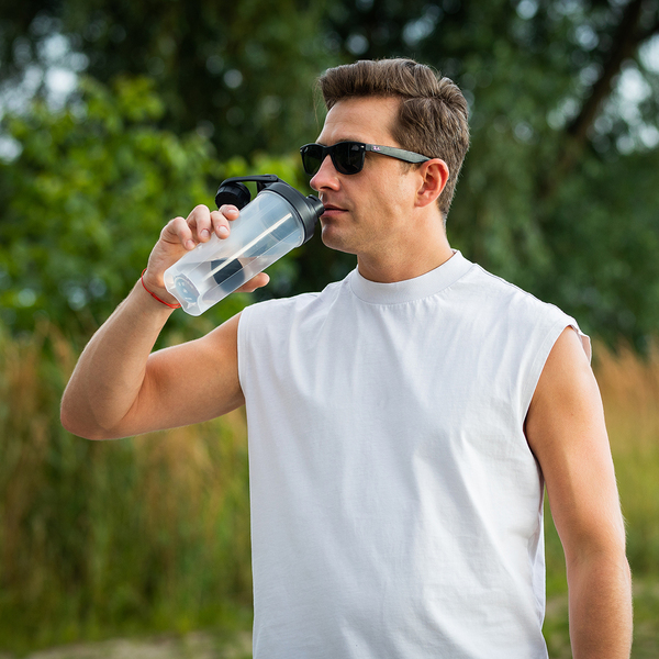 Shaker ideal for protein and other supplements, provides mixing thanks to the mixing ball. Leakproof. Capacity 700ml.