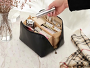 Eco-leather cosmetic bag with handle. Spacious interior with compartments guarantees easy access and safe storage of cosmetics and accessories. Practical for travel and everyday use.