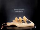 Cheese set consisting of a Parmesan knife, a semi-hard cheese knife, cheese fork and cutting board.