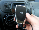 Wireless induction charger built into the car holder, mounted to the ventilation grille. Thanks to the special design, the device can be operated with one hand. The arms of the holder automatically clamp under the weight of the phone and adjust to its size. Frequency: 100-205 kHz. Input: 5V-9V/1.5 A. Output 5V-9V/1 A. Power 10W. USB cable included. The charger works with telephones equipped with the induction charging Qi function.